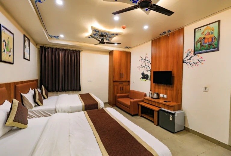 Today, many travelers want comfort and luxury at good prices. This hotel in Hiran Magri, Udaipur, provides just that. It has affordable rooms with modern amenities for a great stay. Each room comes with comfy beds, clean bathrooms, air conditioning, and free Wi-Fi. Guests at this luxury hotel in Udaipur enjoy tasty food and cozy, well-kept rooms. Every stay feels relaxing. It’s a family-friendly hotel in Udaipur. It’s famous for its warm hospitality, polite staff, and peaceful surroundings. Affordable rooms and nearby restaurants in Hiran Magri, along with modern amenities, ensure guest satisfaction. Staying at this hotel in Hiran Magri is great. It focuses on cleanliness, comfort, and personal care for each visitor.